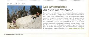 Le club des Aventuriers est ouvert autant aux adultes, qu’aux familles. Depuis sa création en 1976, le club est là grâce aux membres qui organisent des activités pour les membres. Plusieurs niveaux de sortie sont offerts que ce soit pour les débutants ou les experts.